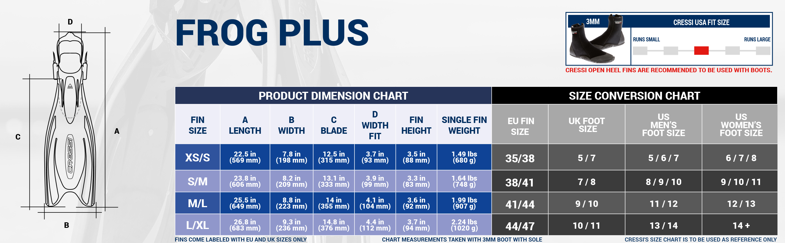Cressi Frog Plus Size Chart